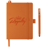 Smooth PU, soft cover bound journal. Color matching elastic pen loop, elastic closure and ribbon page marker. 64 sheets of white lined paper. Please note: Silkscreen imprint will textured effect (small dots) due to nature of material.