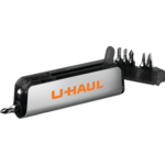 The Screwdriver Set with Flashlight comes with 6 screwdriver bits (2 hex, 2 flathead, 2 Phillips-head) and an inside swivel-handle clip. It also features a single white LED light, a slide on/off power switch and a magnetic base.