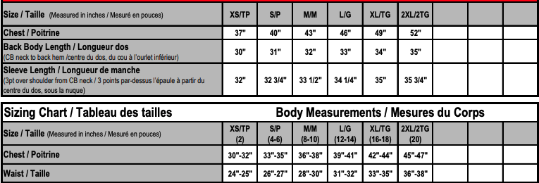 • Sizing Details
